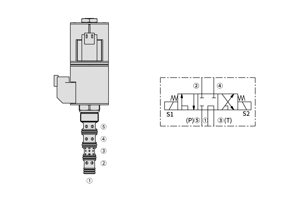 Соленоидный клапан, управляемый электромагнитом, пятипозиционный, трехпозиционный, непосредственного действия, с винтовым соединением, гидравлический картриджный клапан с встроенным датчиком нагрузки.